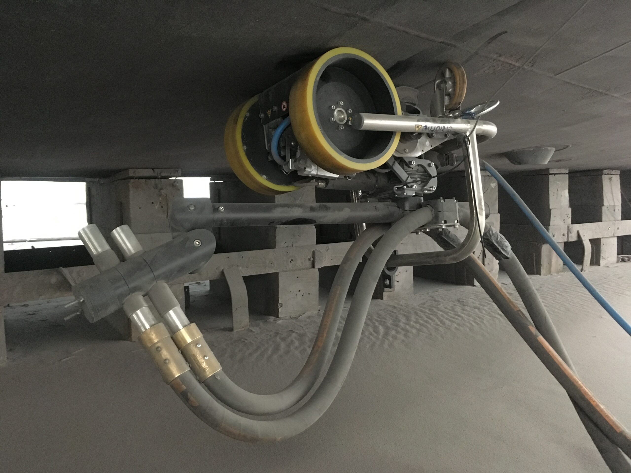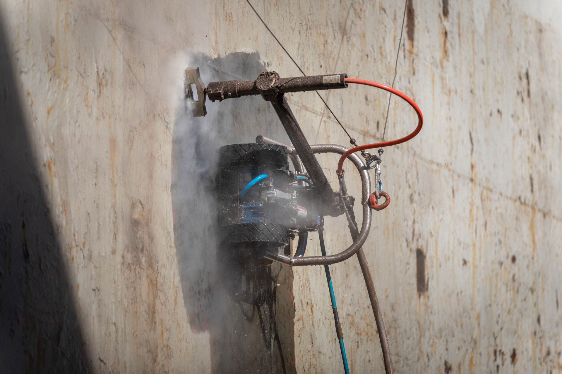 Removal of 200 m2 – 2,150 ft2 coating, rust and heavy marine growth.