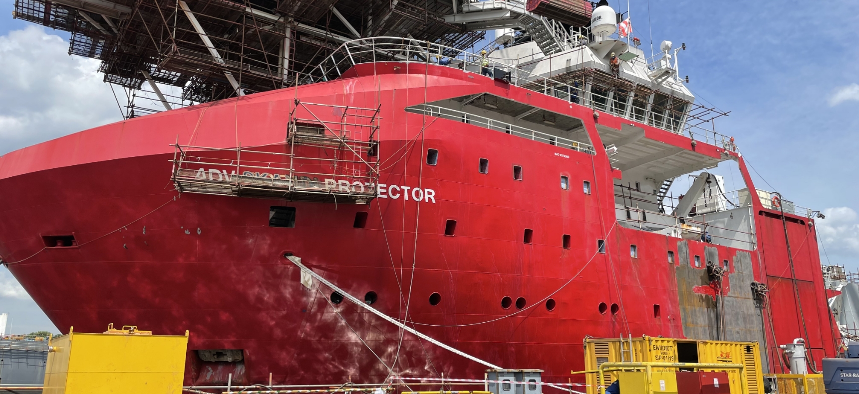 Removal of 200 m2 – 2,150 ft2 coating, rust and heavy marine growth.
