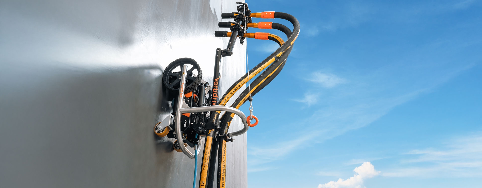 VertiDrive produces magnetic robotic crawlers for automated surface preparation, cleaning, and inspection. These robots adhere to steel surfaces, enabling hands-free operation for tasks like high-pressure water blasting and vacuum cleaning. Used in industries such as marine and oil & gas, VertiDrive’s solutions enhance efficiency, reduce labor costs, and improve safety in hazardous environments.