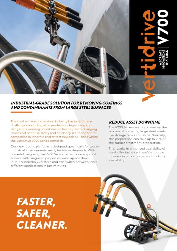 Discover the future of steel surface preparation with the next generation VertiDrive V700 Series, embodying our creed: “Safer, Faster, Cleaner“, through a seamless fusion of safety, efficiency, and advanced technology.